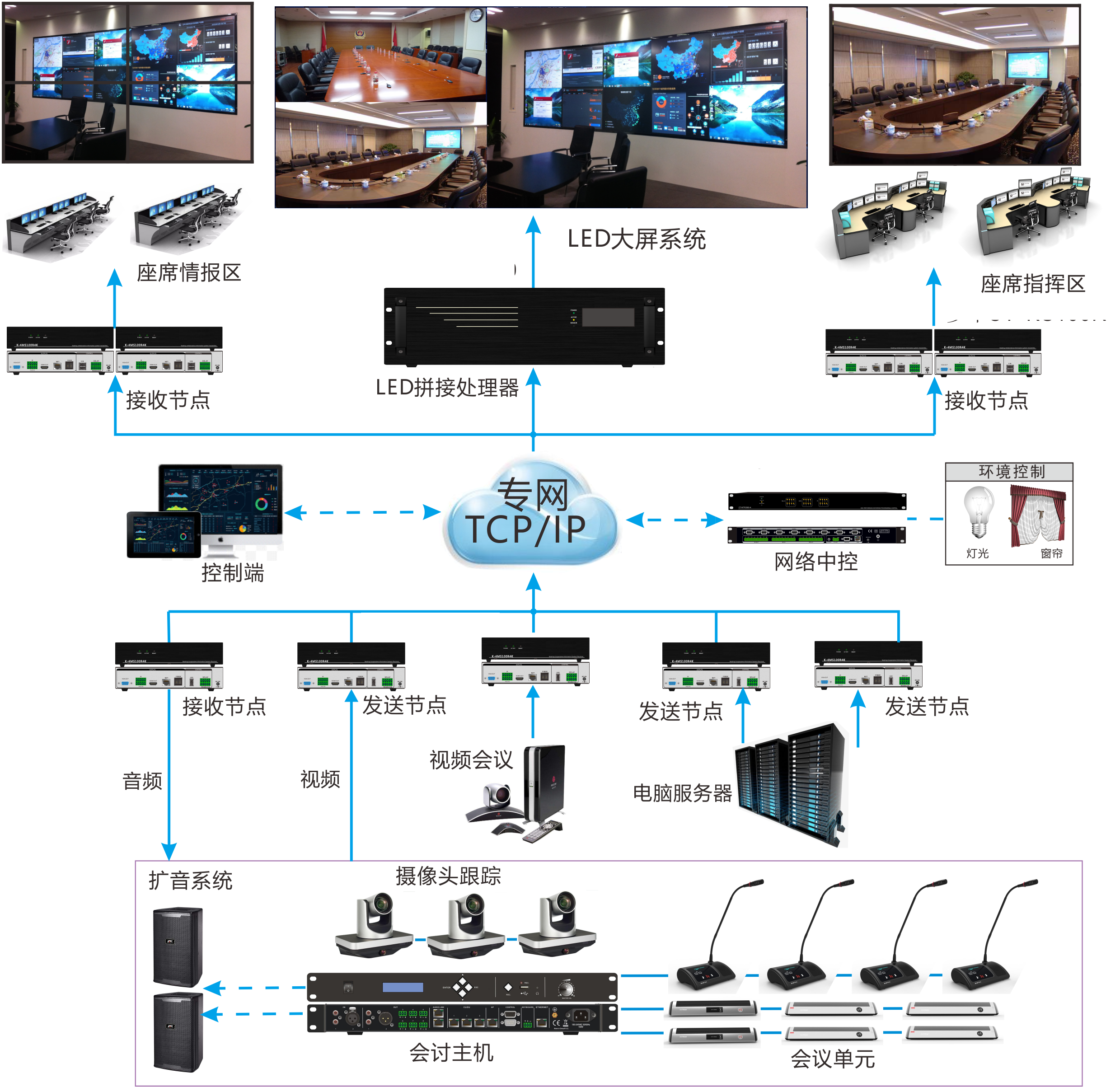 分布式拼接處理系統(tǒng)+WIFI會議系統(tǒng)+多媒體中控系統(tǒng)+對講廣播系統(tǒng)
