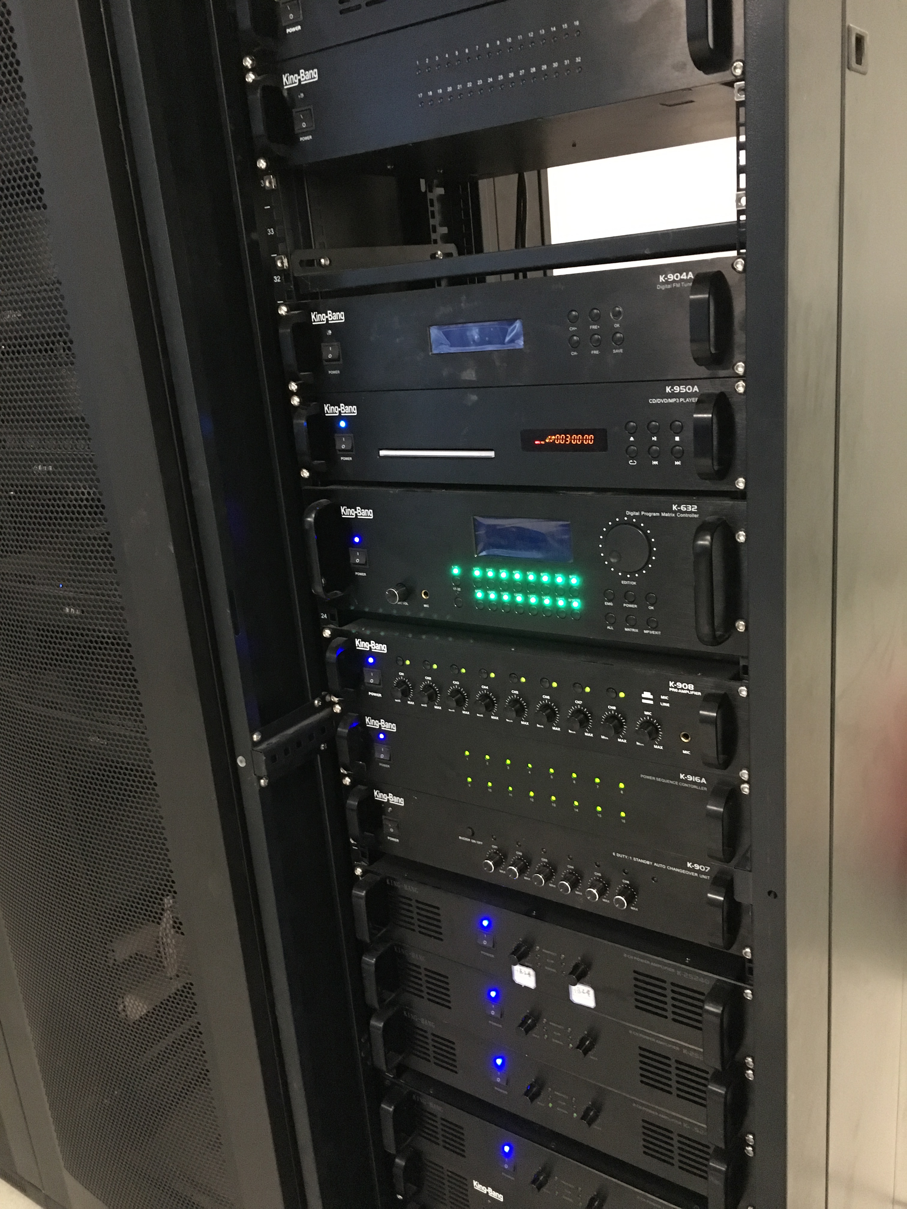 該項(xiàng)目共配置了1套智能廣播系統(tǒng),由控制中心同時(shí)控制博物館所有區(qū)域的背景音樂、定時(shí)打鈴、尋呼廣播等功能。京邦電子(KING-BANG)廣播系統(tǒng)是集播放、智能定時(shí)控制、遠(yuǎn)程尋呼、智能消防聯(lián)動(dòng)等功能于一身的公共廣播系統(tǒng)。